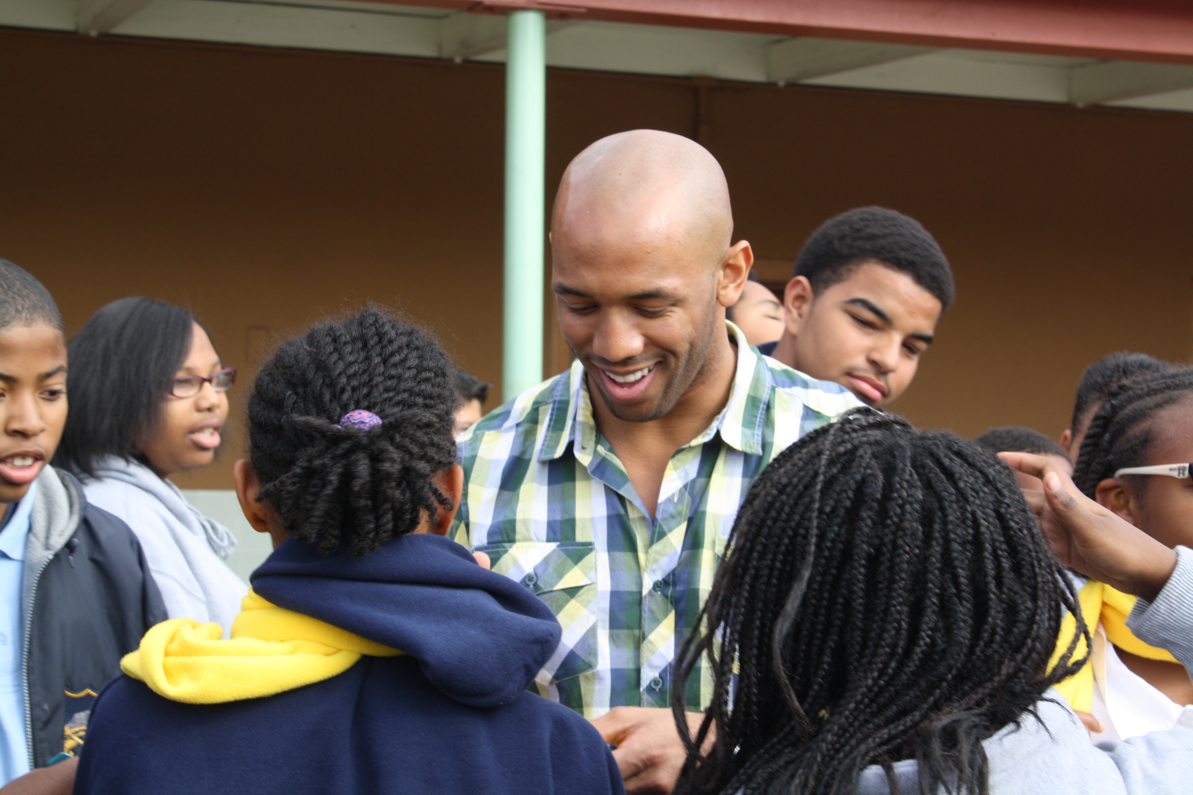 Football Star Matt Ware came to visit at Holy Name. Mr. Ware is an American football safety who is currently a member of the Toronto Argonauts of the Canadian Football League. He was drafted in the third round with the 89th pick in the 2004 NFL Draft by the Philadelphia Eagles. He played college football at UCLA.